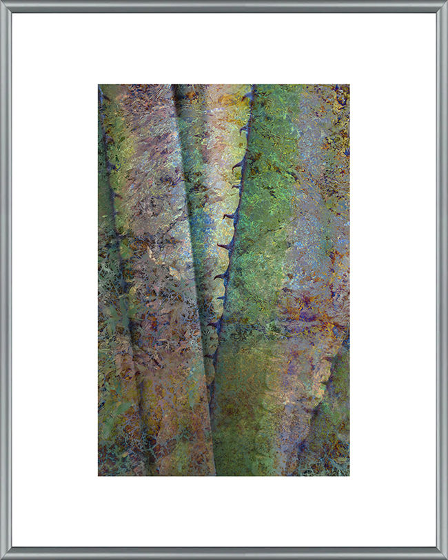 Working in abstraction, it is imperative to be curious, open, and trusting. It is a process in playful abandon and breathless discovery. This series uses multiple exposures interacting with each other to create unique, complex portrayals of nature. The images are created with a variety of sources including flowers, leaves trees, rocks, clouds, skies, mountains, and streams.